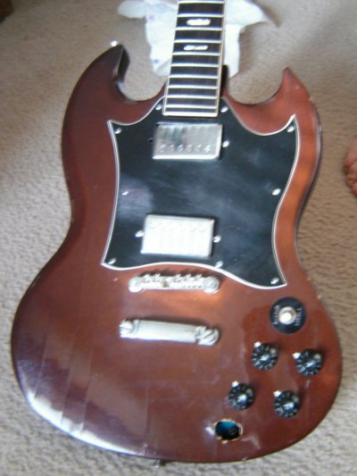 ...follow-up The Electa, not ElectRa, was really a risk buying. One that I would not take again. Its plywood body was damaged in shipping. The electronics were/are of poor quality. Poor neck joint cavity. The humbuckers were phonies, single coils in humbucker casings. Not a quality guitar. One the bright side, because the body was busted I decided to make a new one and refinish the neck to see if it was worth saving. In fact, it was. The neck was made of a single piece of mahogany with no joints. Nice fretboard with MoP square inlays. Starting a 1, 3, 5 , etc stopping at the 17th. 22 frets total. Truss rod still adjustable. I've come to the conclusion that the manufacture slapped surplus necks onto terrible bodies with economy hardware and electronics. The only saving grace was the neck. Stear clear of the lower end Electa guitars. |